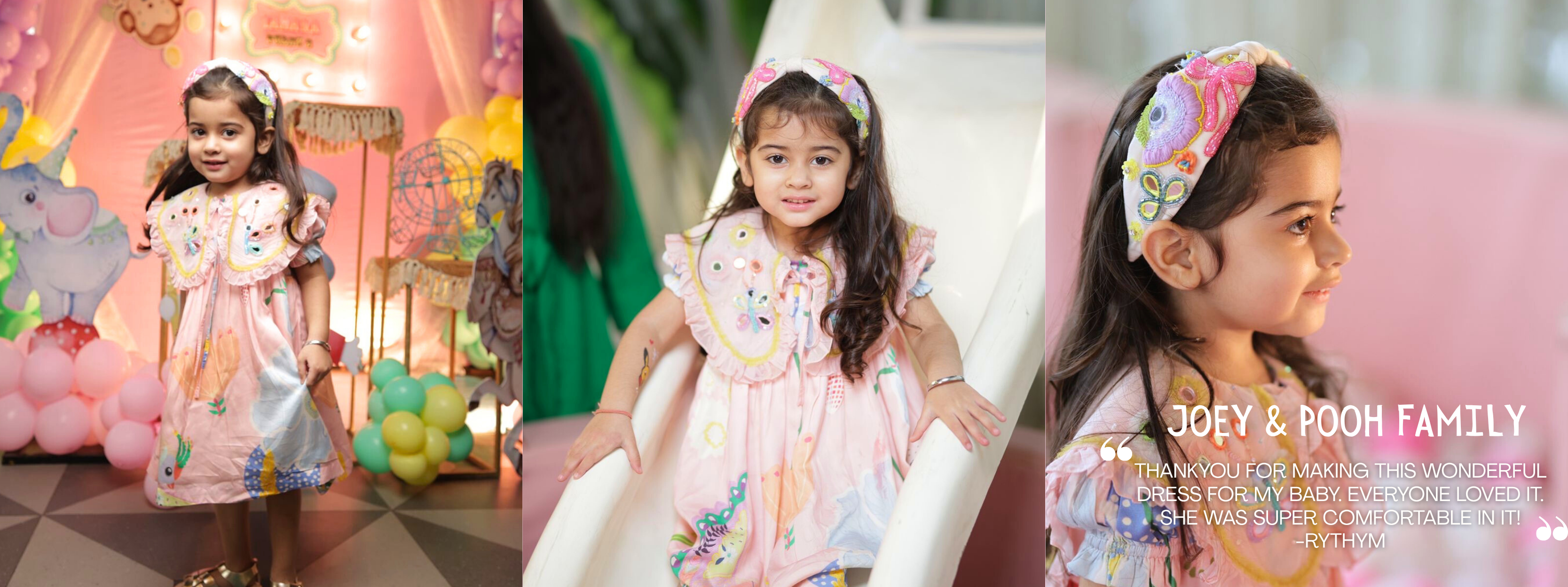 Buddy Buds Hand Embroidered Cotton Collar Dress Mini Kids - Joey & Pooh
