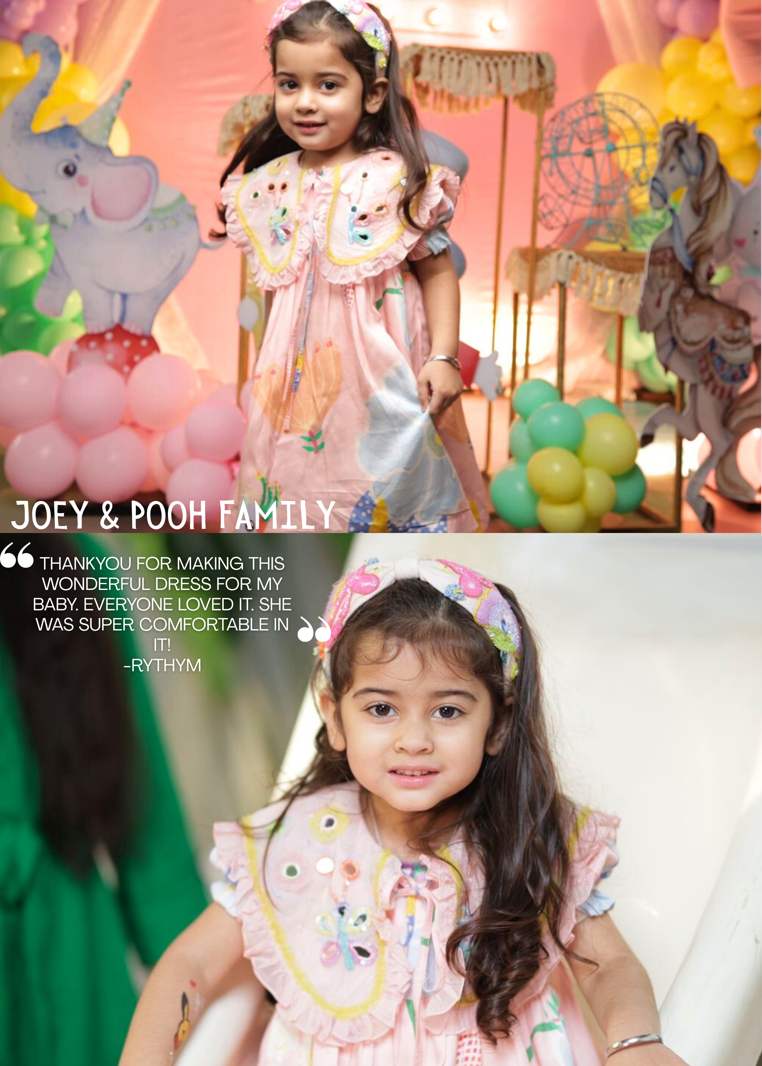 Flutter Bloom Embellished Printed Babydoll Kids Dress - Joey & Pooh