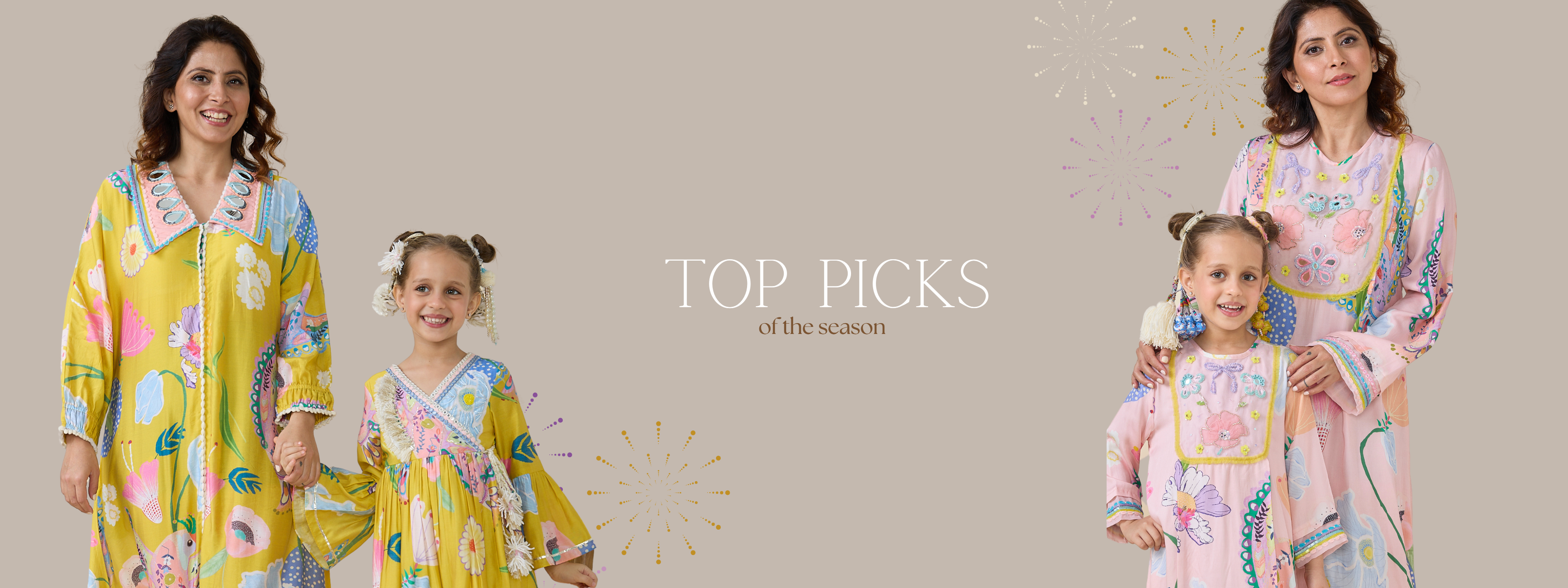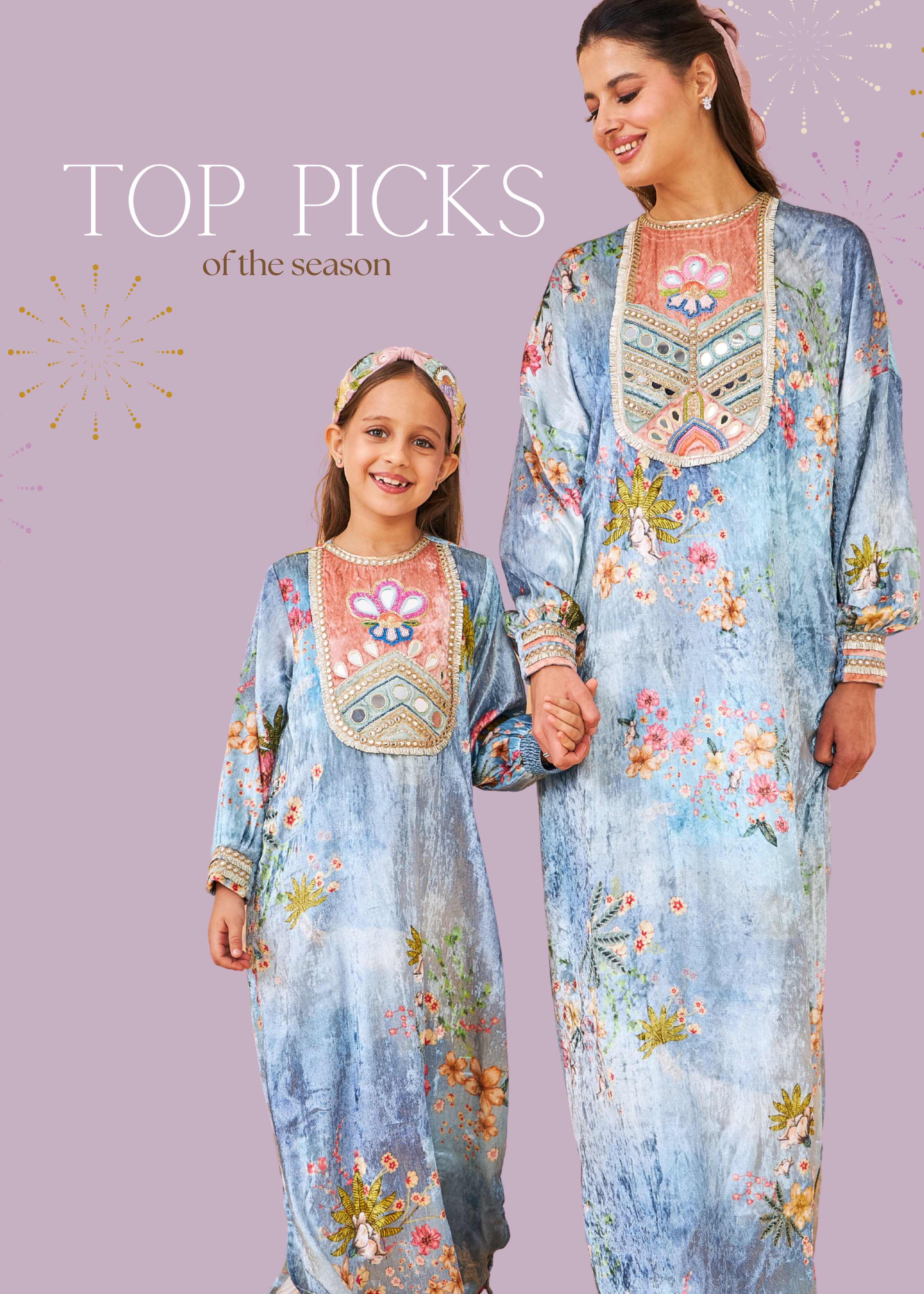 Dala Printed And Embellished Girls Long Dress & Dala Embellished Ladies Long Dress