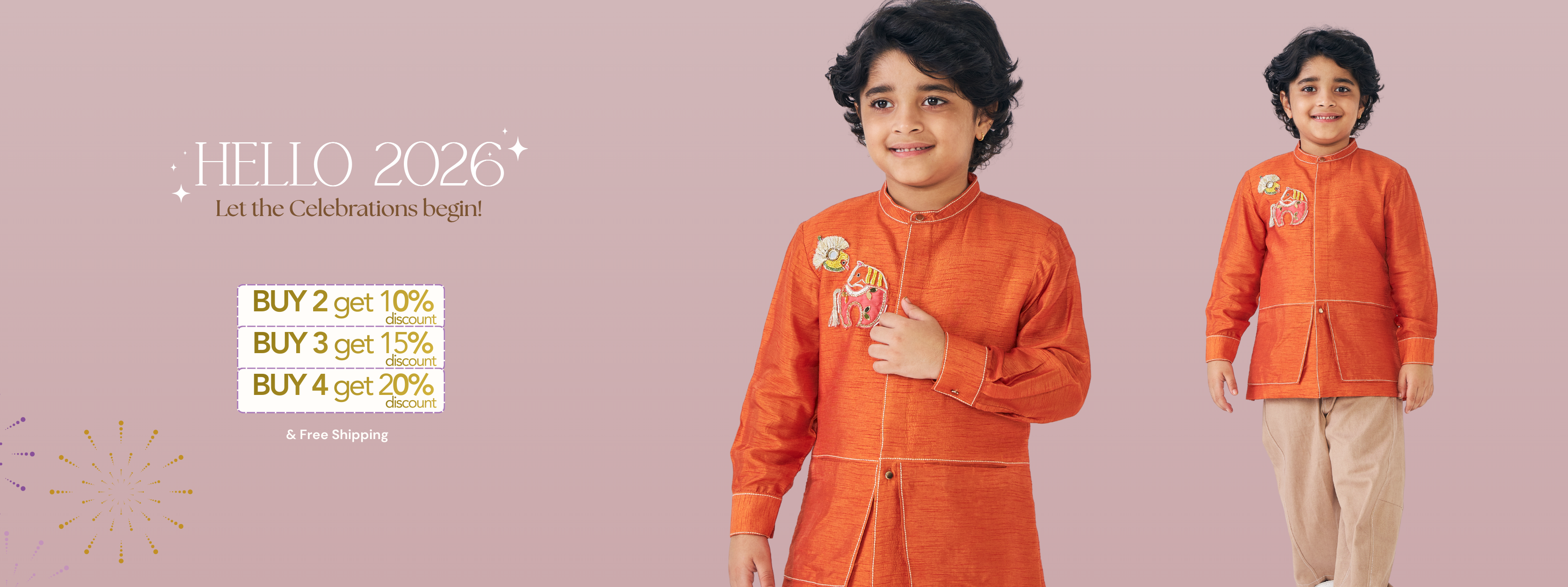 Ella Mae printed Boys Kurta set ( Set of 2 pcs)