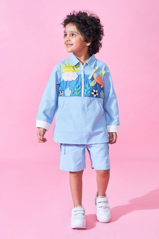 Sunny Sky Embroidered Boys Coord ( Set of 2 pcs)