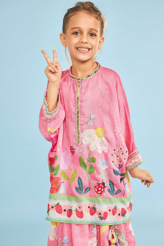 Strawberry Girls Embellished Tunic With Skirt (2 Pc Set)