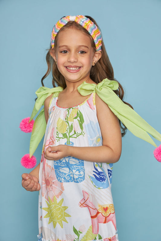 Fly High Cotton Embroidered Dress Mini For Kids - Joey & Pooh