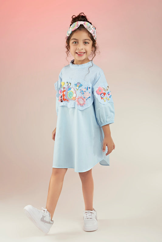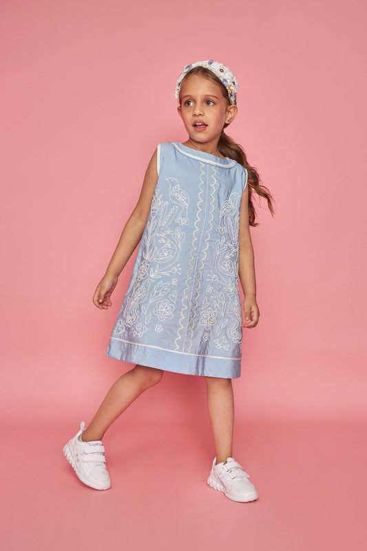 Dawn Kids Blue Embroidered Dress Bloom