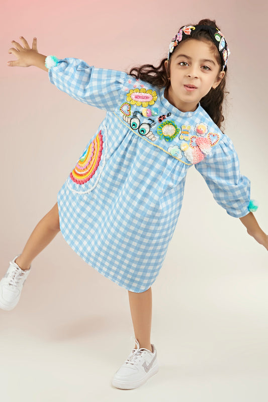 KEWT Gingham Embroidered Printed Dress Mini Kids -Joey & Pooh