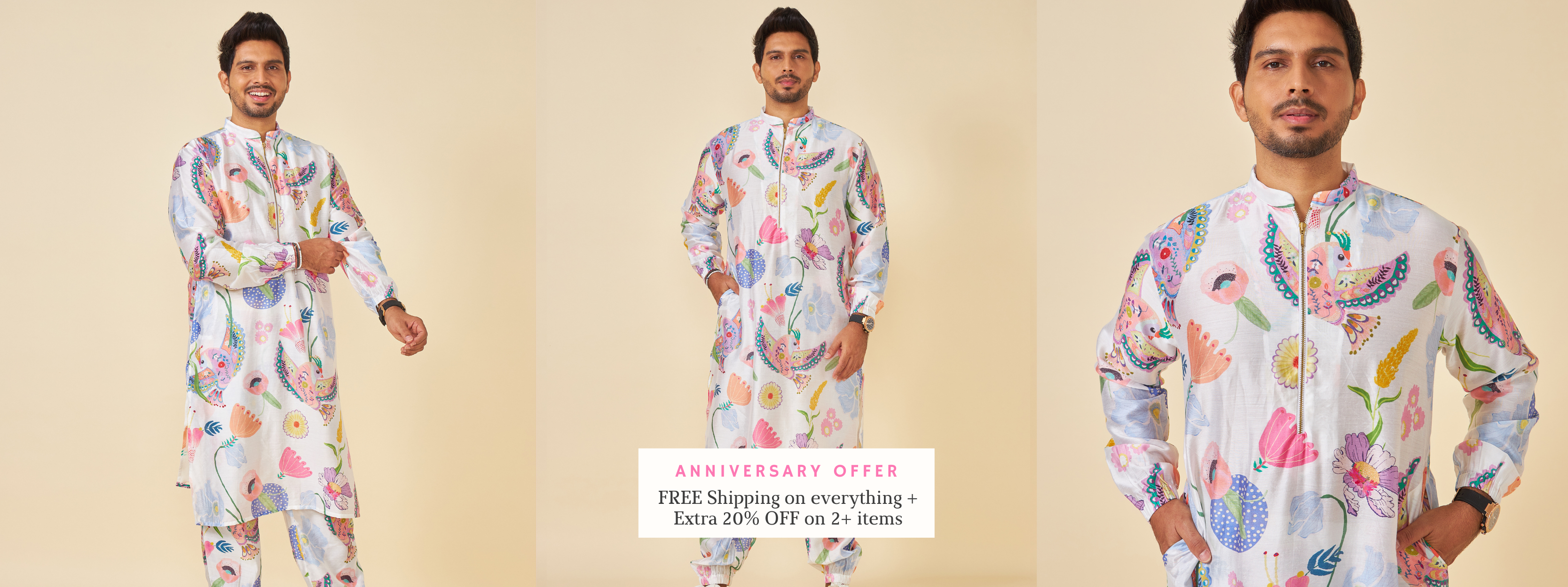 Mae Embroidered Men's Kurta and Pant ( Set of 2 Pcs)