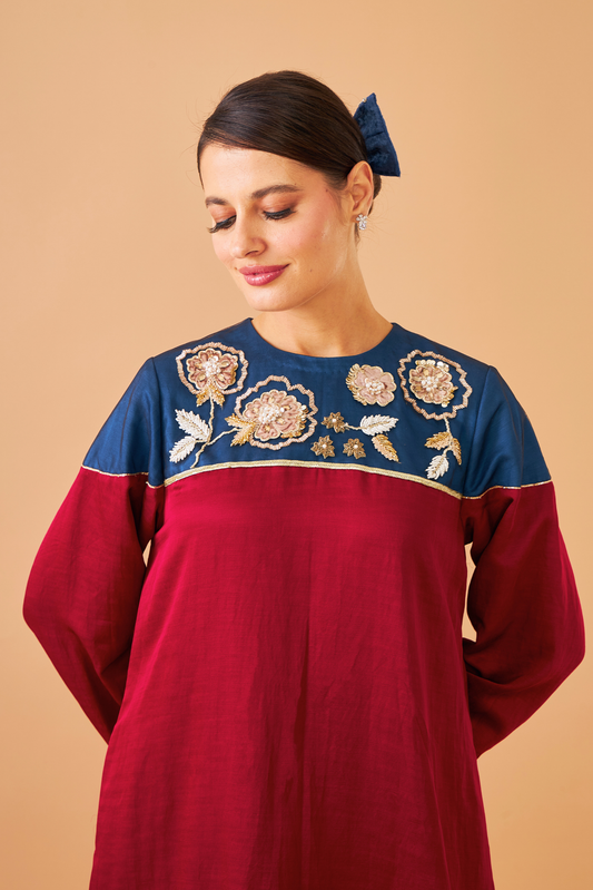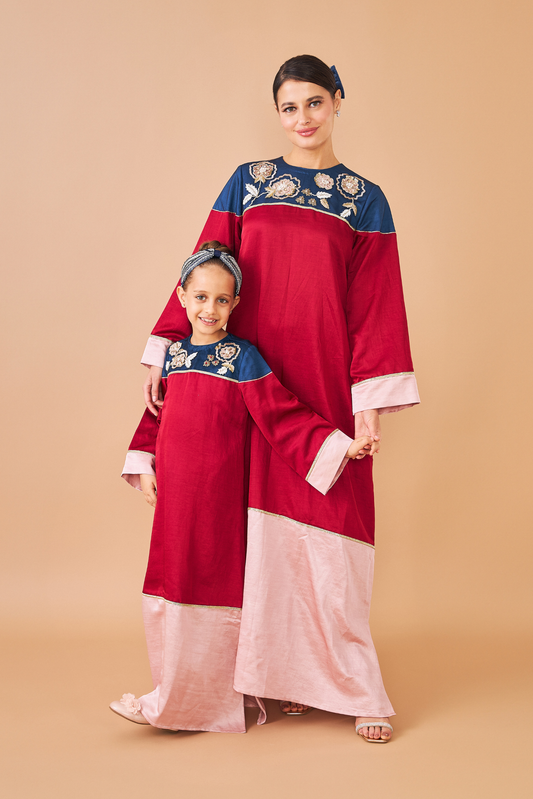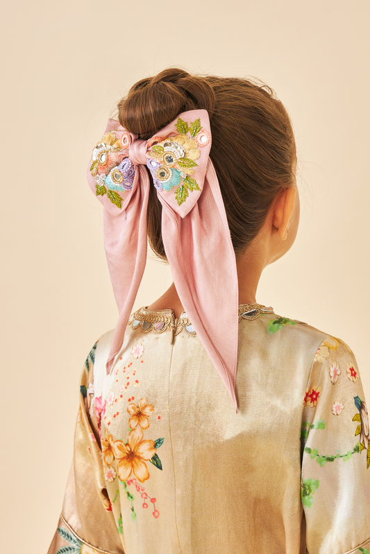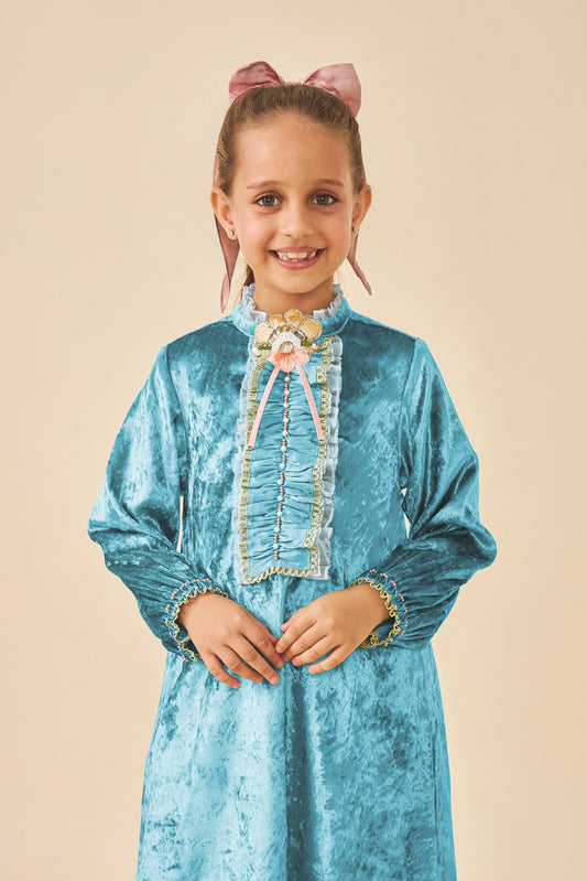 VELVET Dragonfly Mirror Yoke Embellished Girls Long Dress( Light peach color)