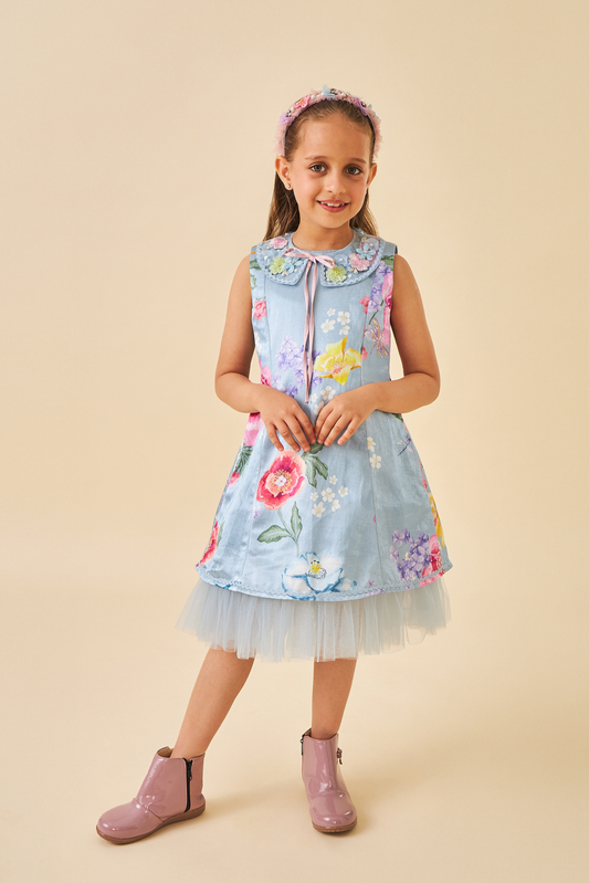 Zehra Blue Girls Collar Dress
