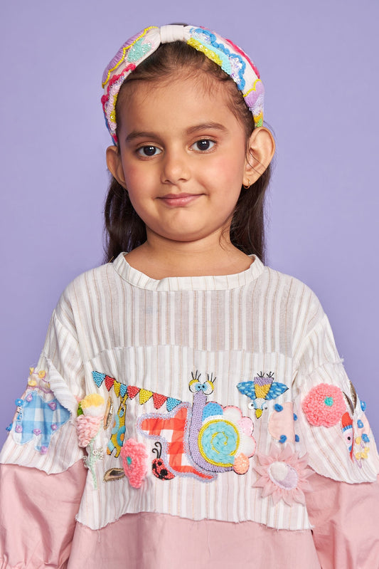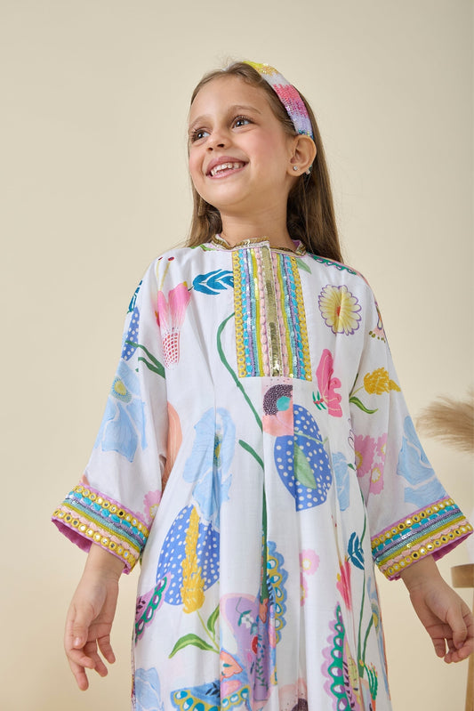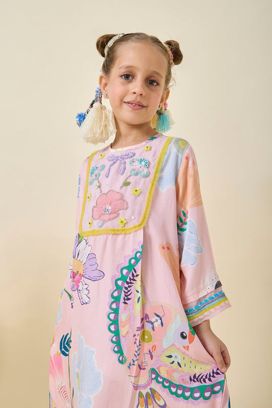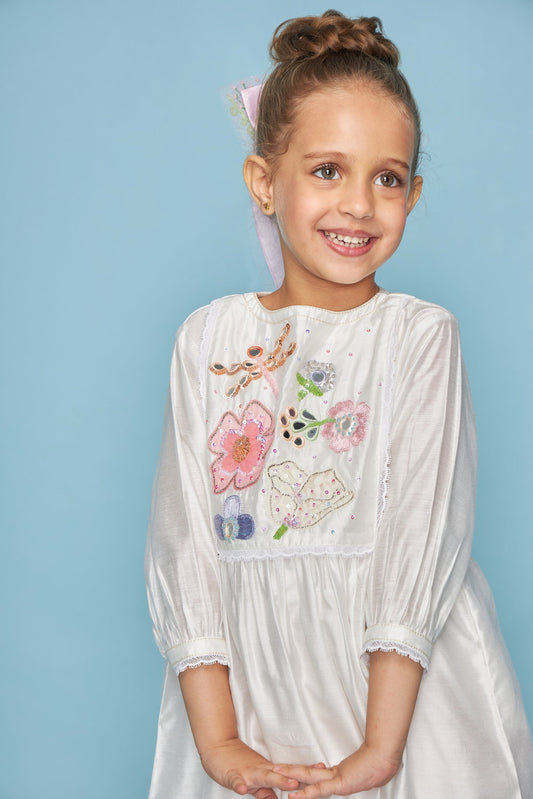 Dragonfly Mirror Yoke Embellished Girls Long Dress