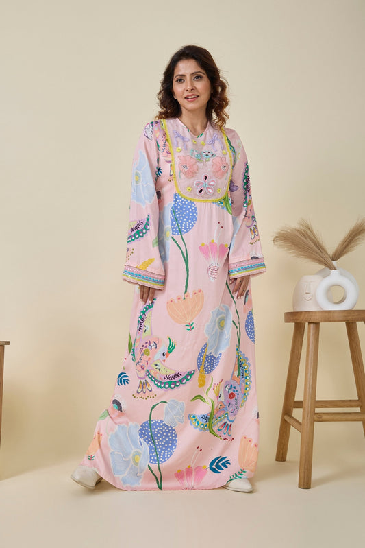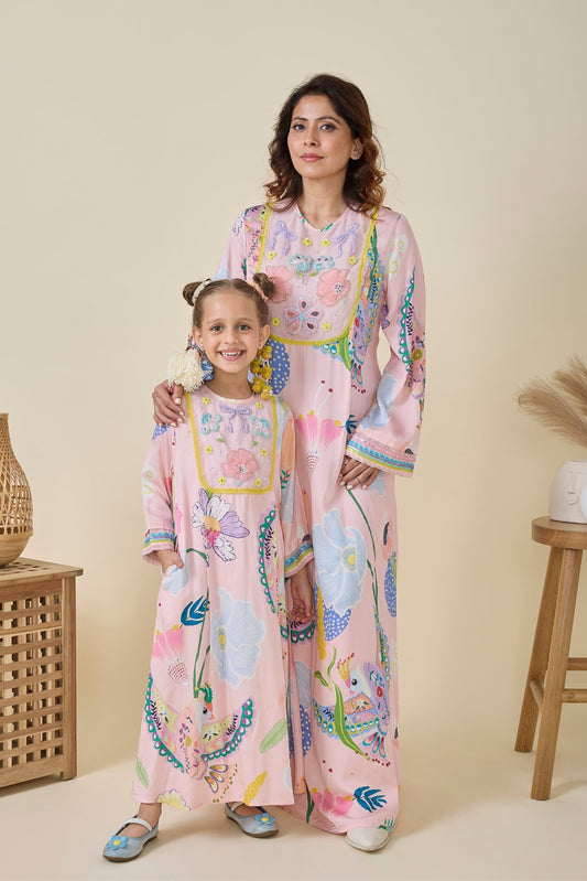 Jane Pink Embellished Girls Long Dress & Jane Pink Embellished Ladies Long Dress