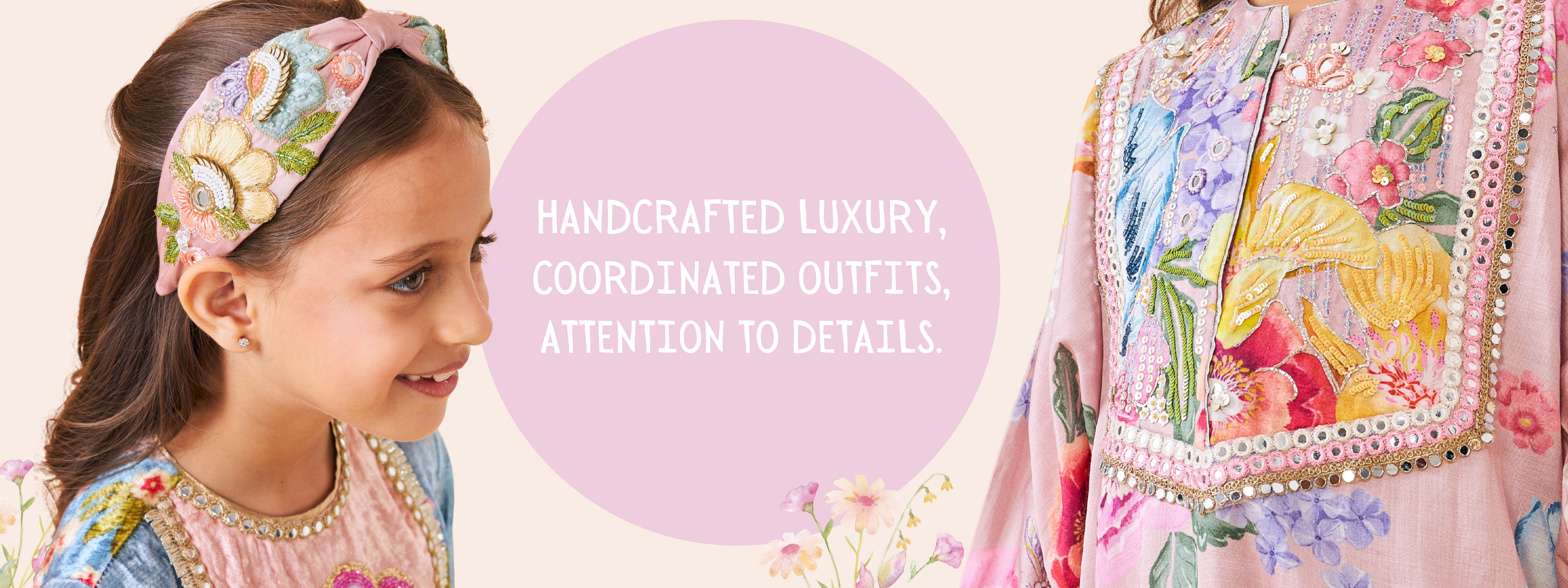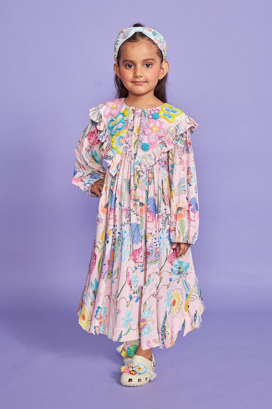 Kewt Orchid Hand Embroidered Girls Long Dress