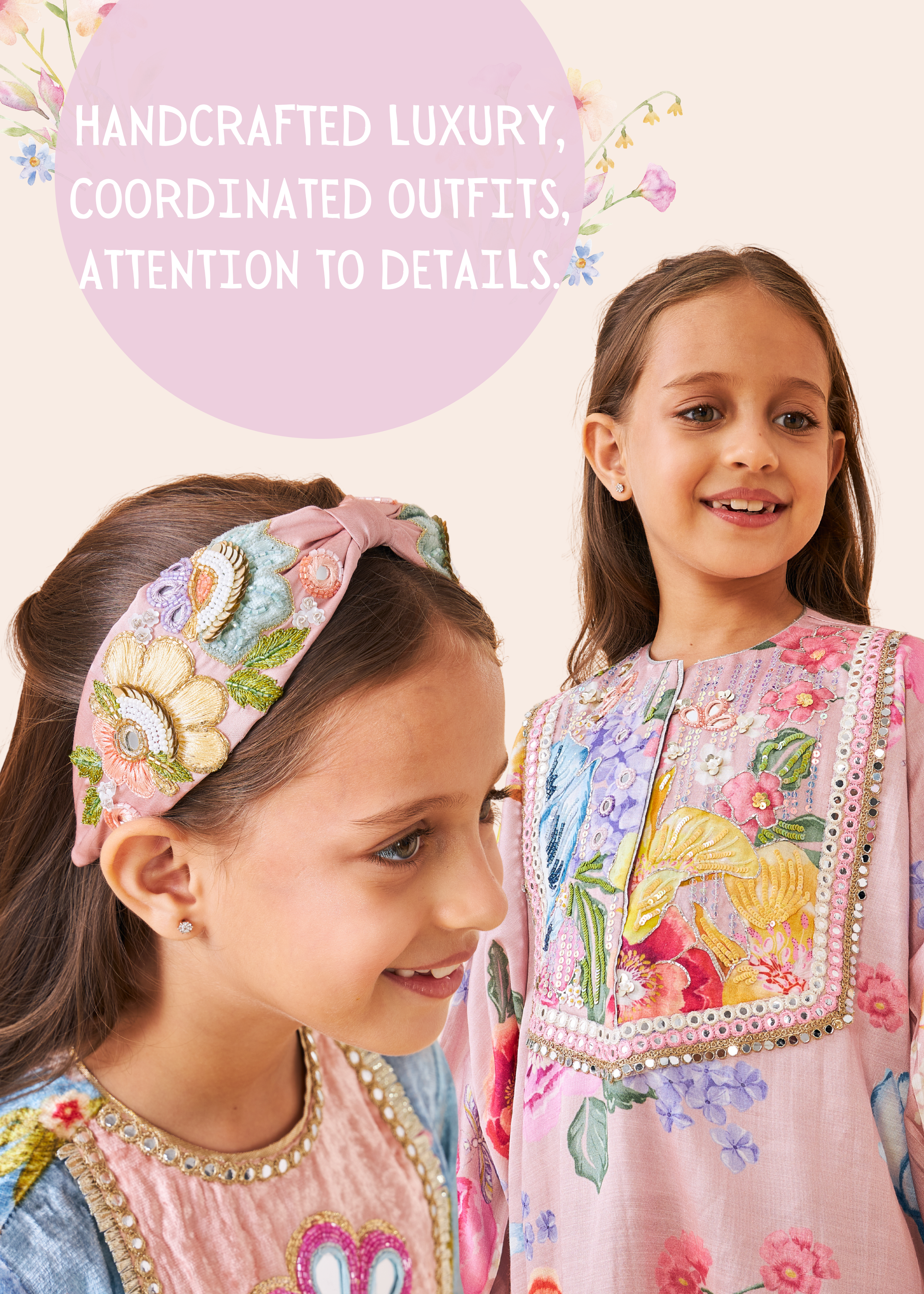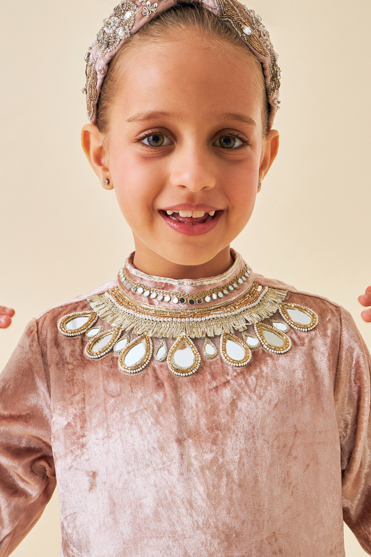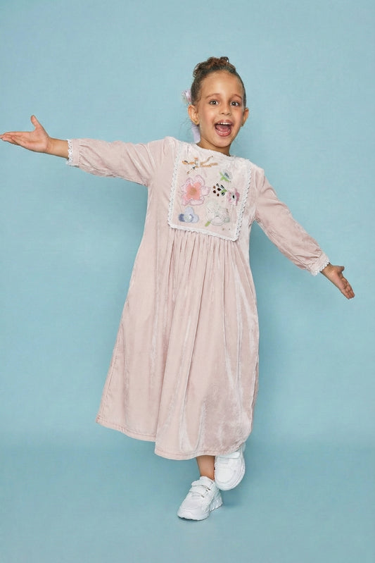 VELVET Dragonfly Mirror Yoke Embellished Girls Long Dress( Light peach color)