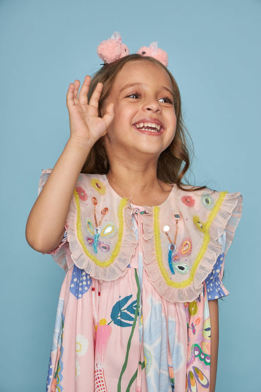 Dragonfly Mirror Yoke Hand Embellished Kids Dress - Joey & Pooh