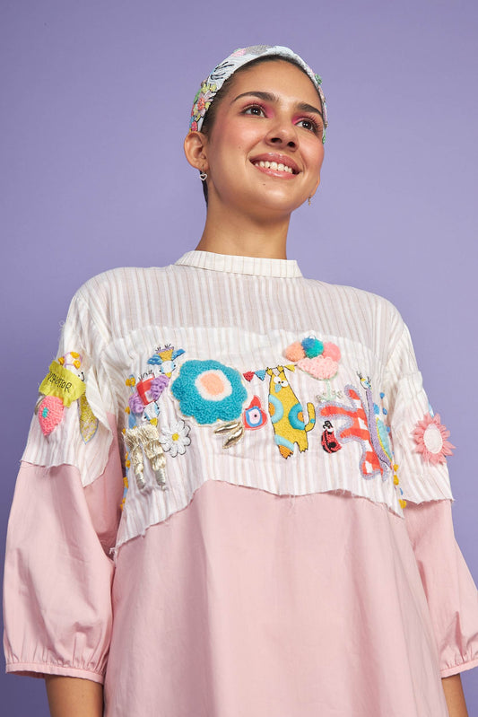 Tweet Pink Babydoll Hand Embroidered Kids Dress - Joey & Pooh