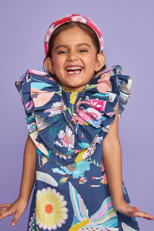 Tweet Blue Kids Cotton Ruffle Dress - Joey & Pooh