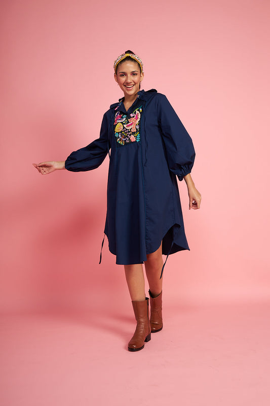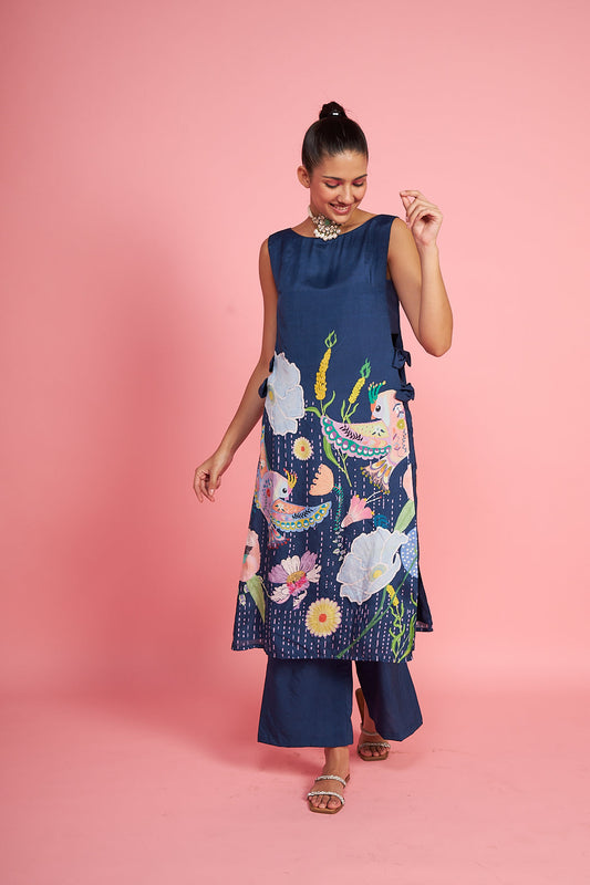 Sparrow Navy Bow Tie Kurti Co-ord