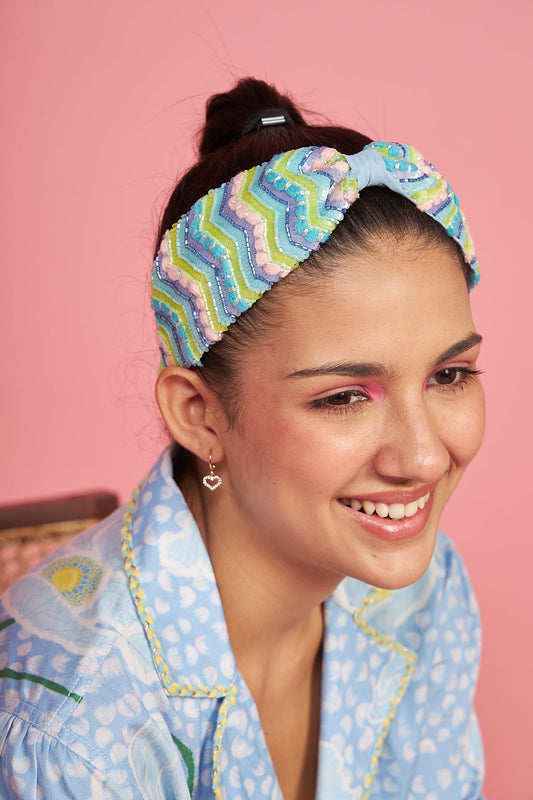 Evissa Blue Hand Embroidered Headband/Hairband - Joey & Pooh