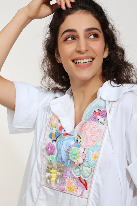 Mad Maze Embroidered White Dress (Joey & Pooh)