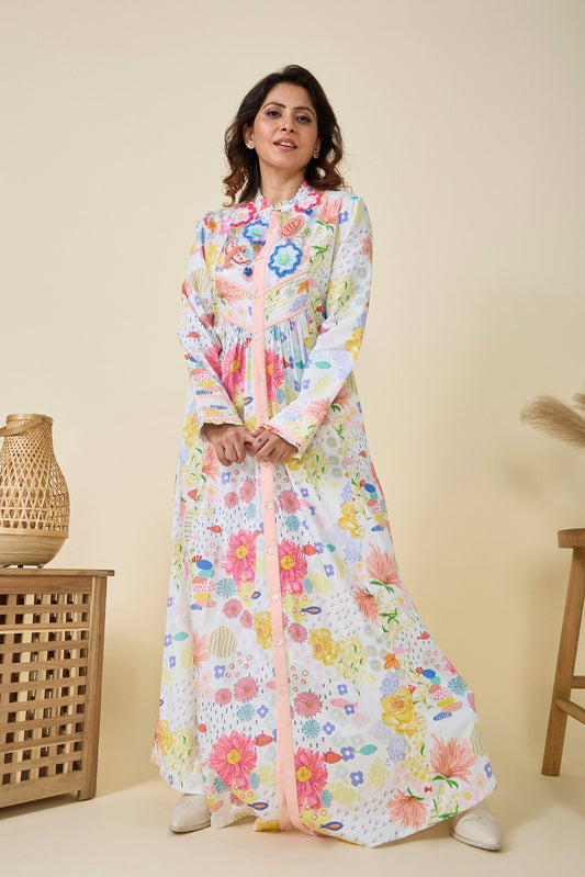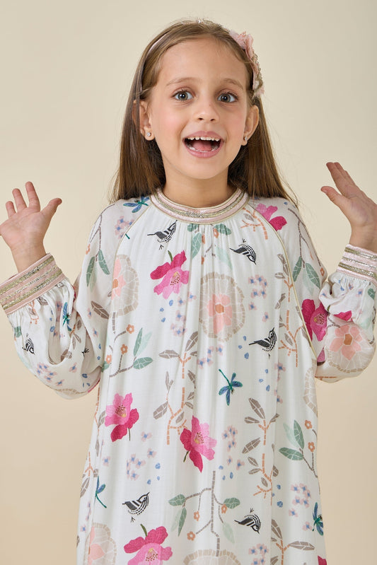 Fiona Printed Off White Girls Long Dress