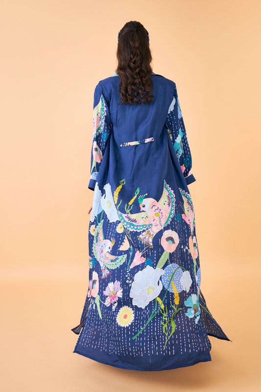 Sparrow Navy Ladies Coat with Velvet Long Dress ( set of 2 pcs)