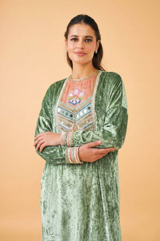 Clea Jade green Velvet Ladies Long Dress