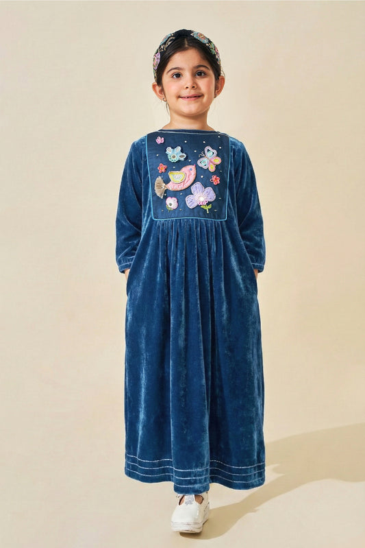 VELVET Luna Blue Girls Embellished Long Dress- 1 pc