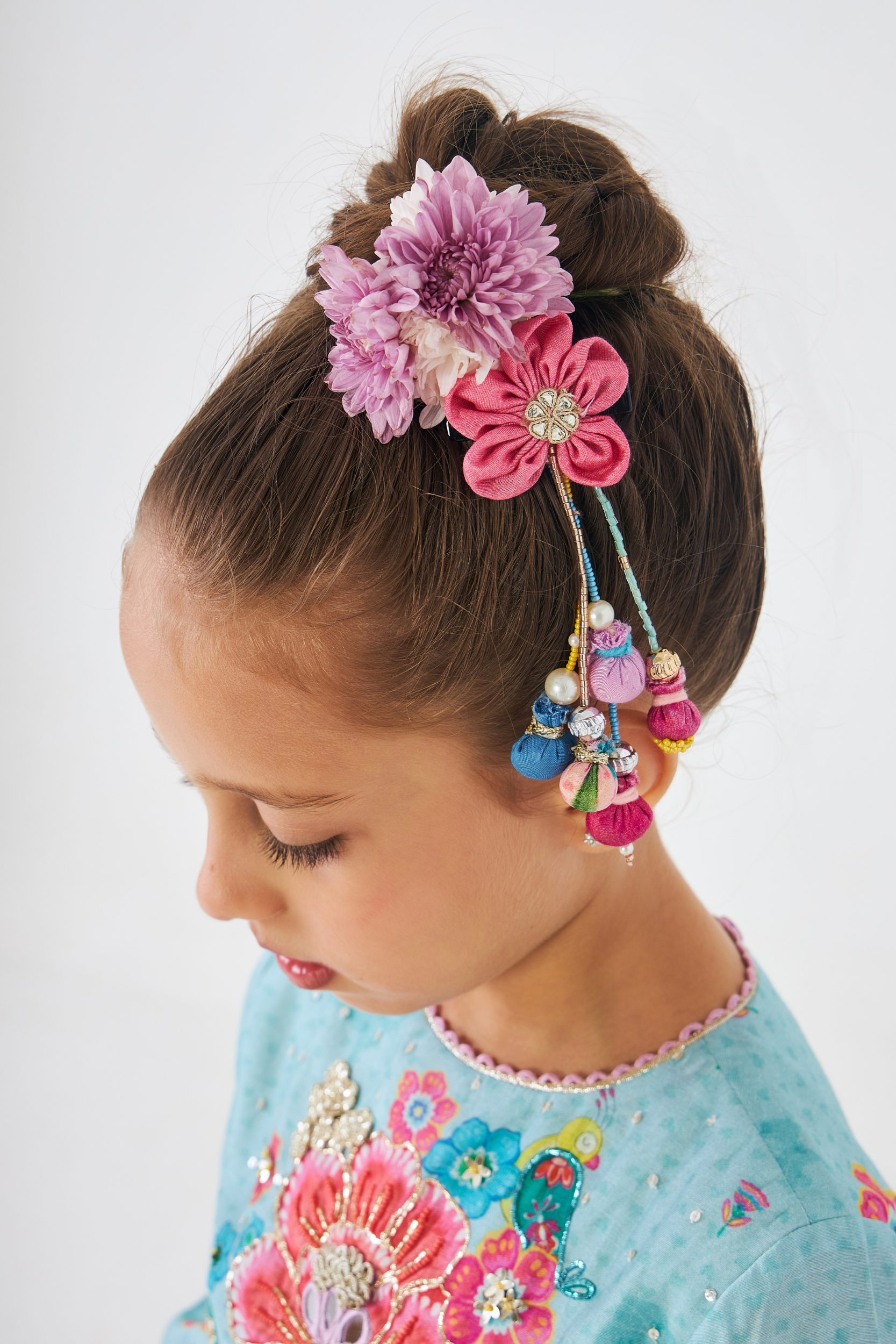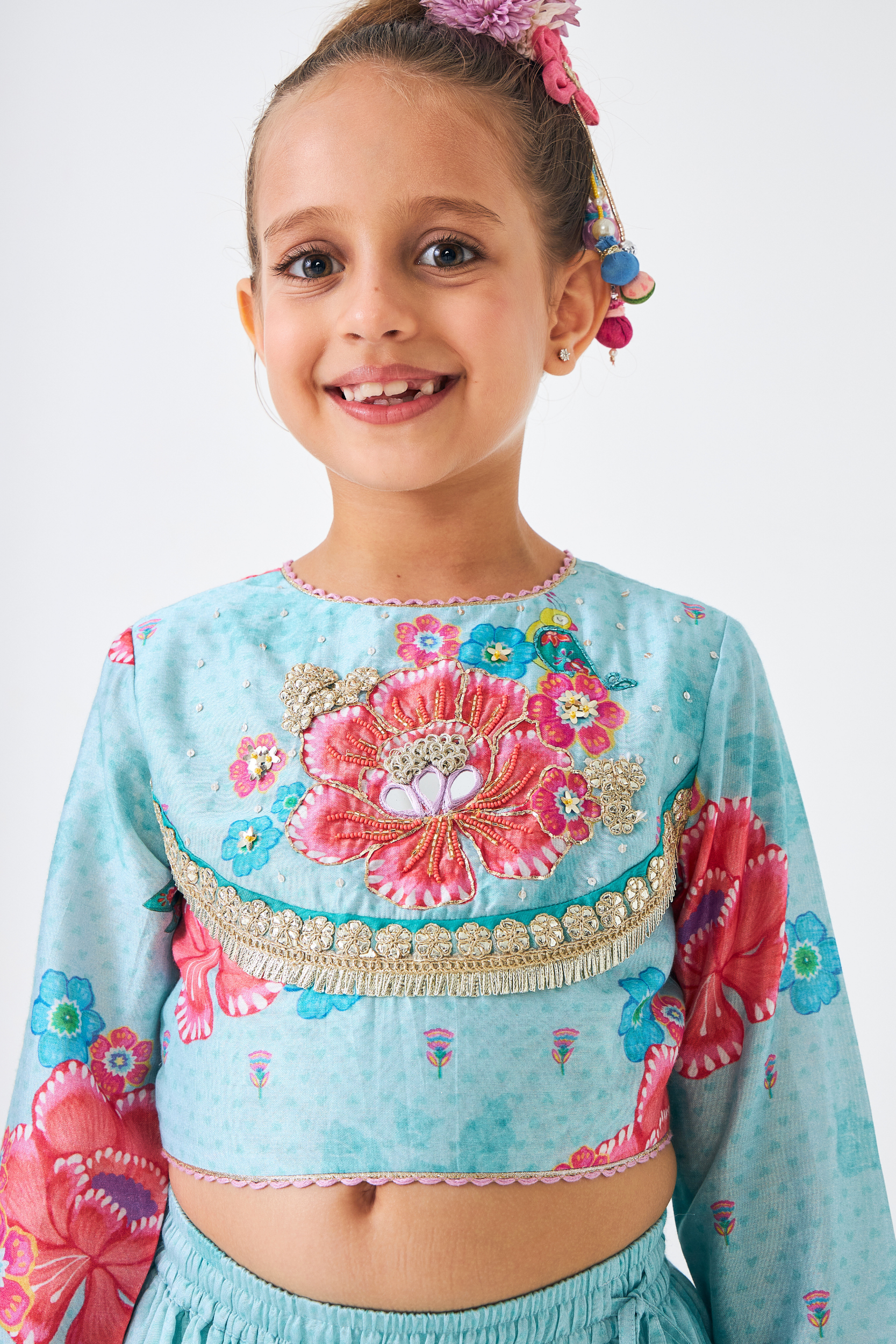 - Crop Top With Embroidered Yoke: Pitta, Mirror, Tikki & Gold Gota Flowers.