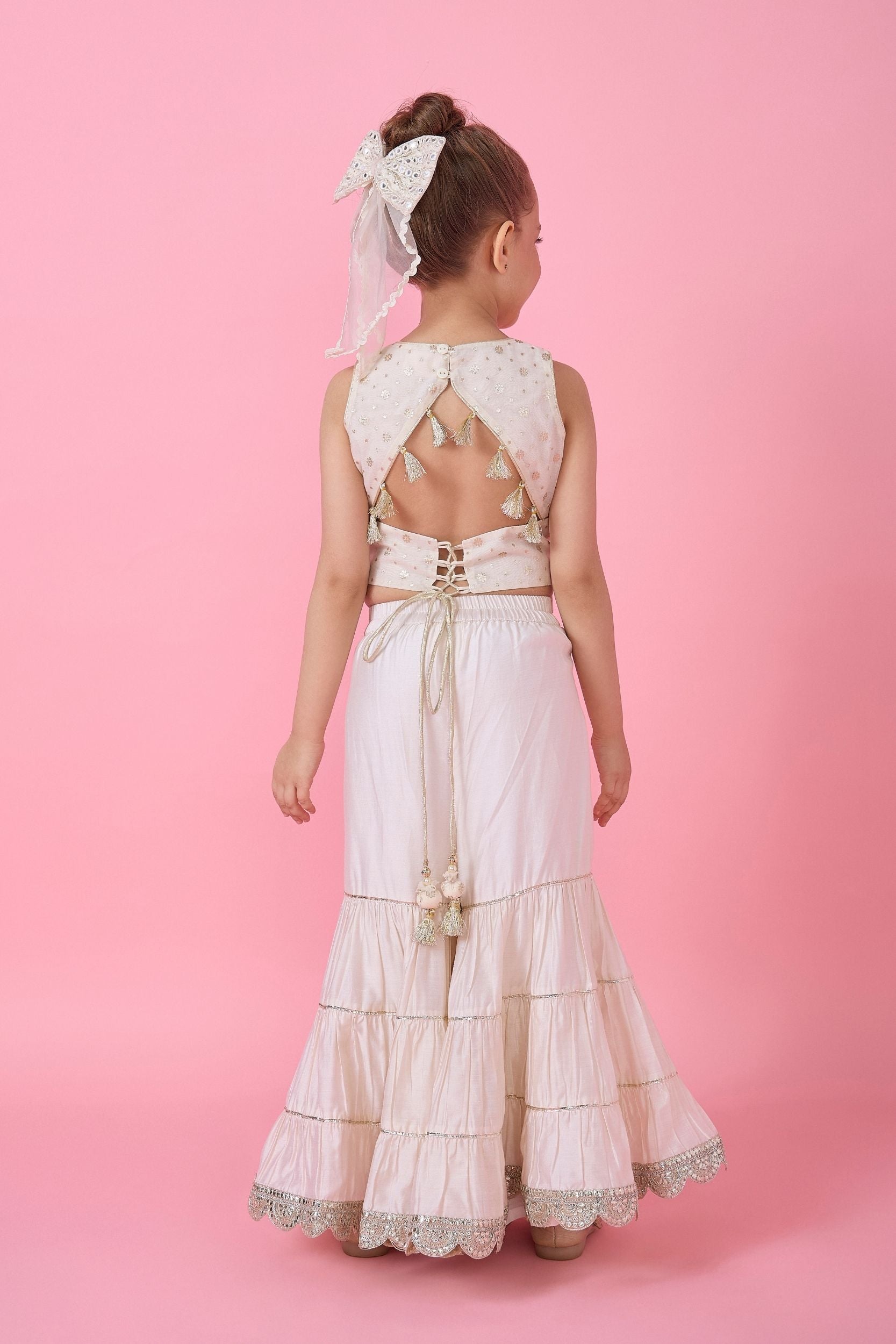 - Sharara pants with an elasticated waist with side tie-up.