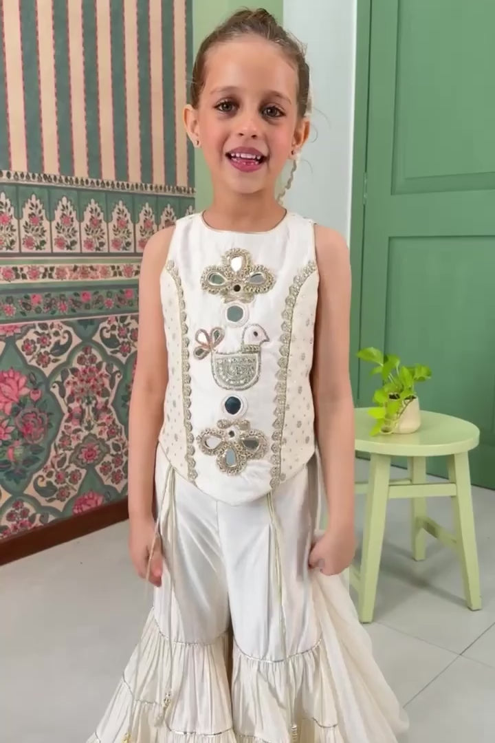 Our Ivory Sharara Set is the epitome of elegance and sophistication. The intricately embroidered top adds a luxurious touch, while the tiered sharara and soft net dupatta complete the ensemble with grace. Perfect for festive occasions, this set is designed to make you shine effortlessly.
